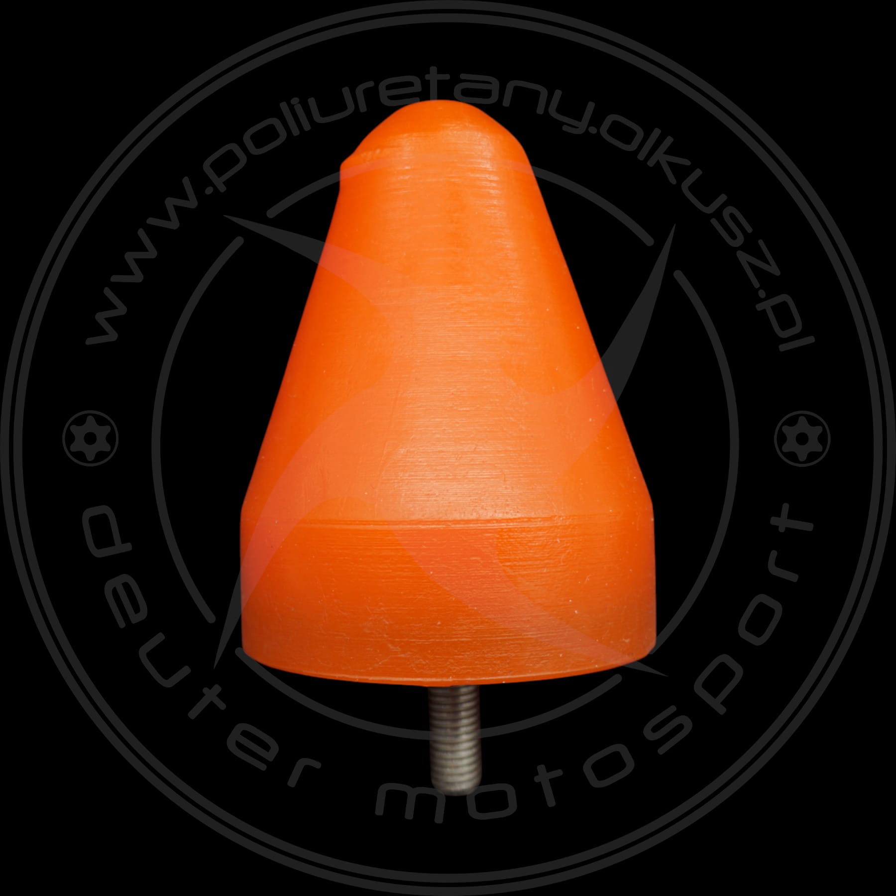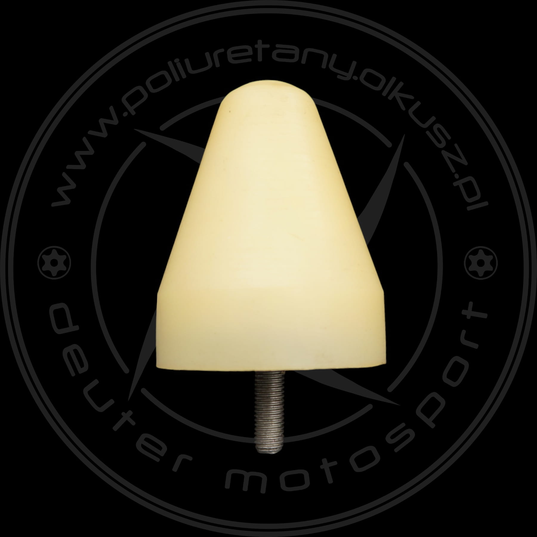 W skład kompletu wchodzą: Odbojnik stożkowy fi podstawy 90mm, wysokość120 mm, mocowanie śruba M12, 55ShA - 1szt.